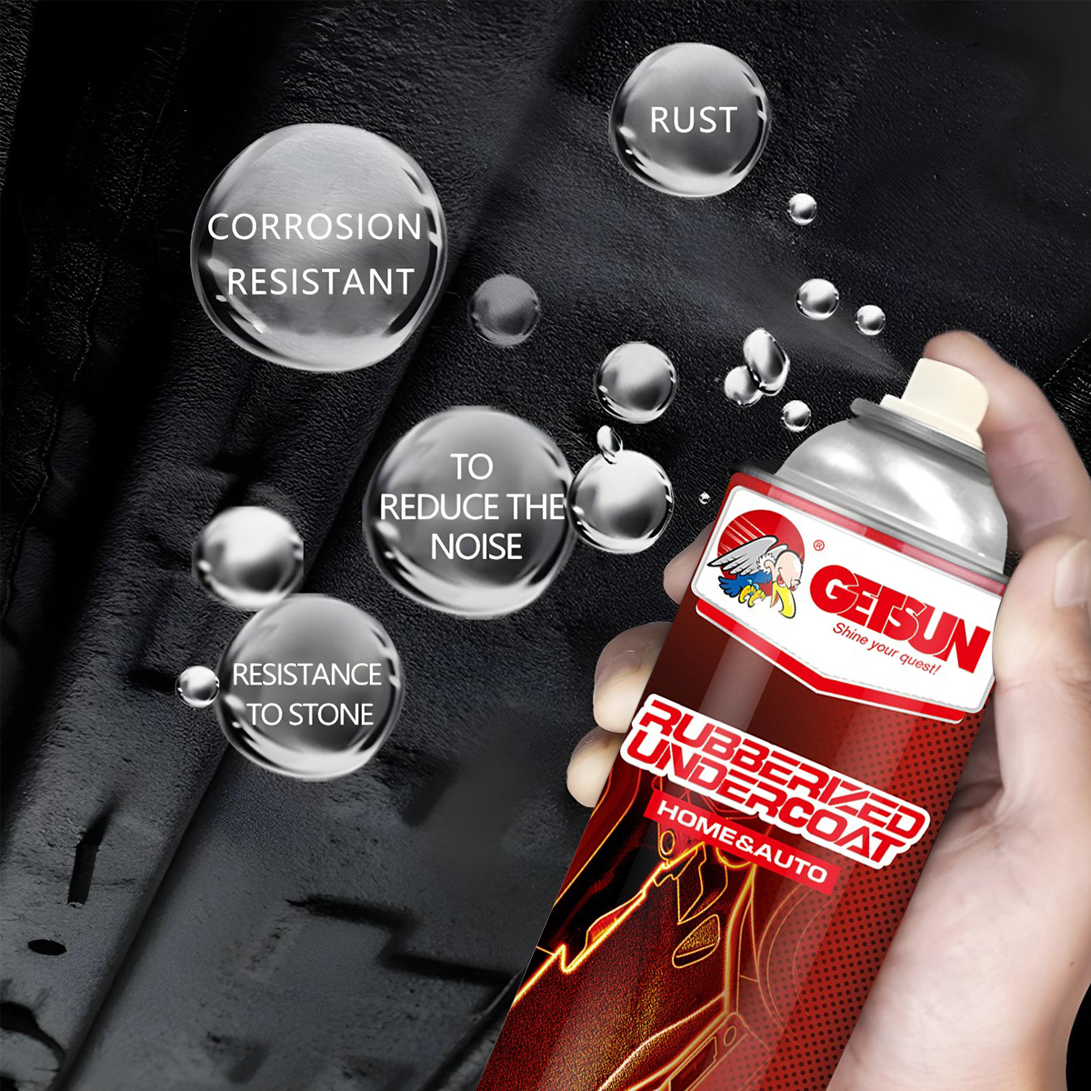 GETSUN Rubberized Undercoat Spray 650ml GT-2015A | Anti Rust Car Underbody Coating | Sound Deadening Waterproof Protective Coating for Auto Panels, Chassis & Fenders GT-2015A