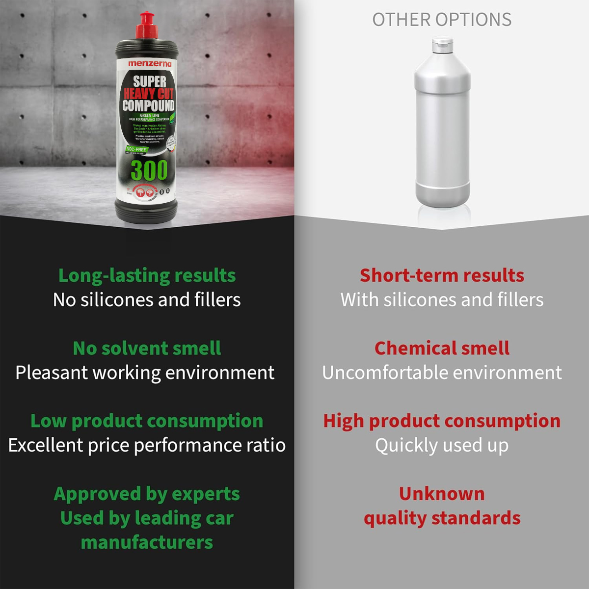 MENZERNA Super Heavy Cut Compound 300 (1L) – Professional Car Polishing Compound for Deep Scratch & Paint Defect Removal, High-Cut VOC-Free Detailing Solution