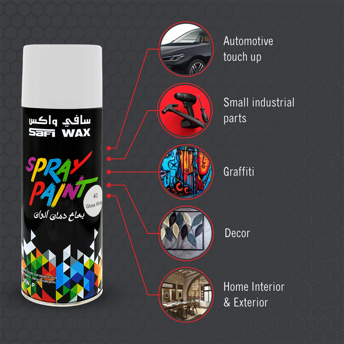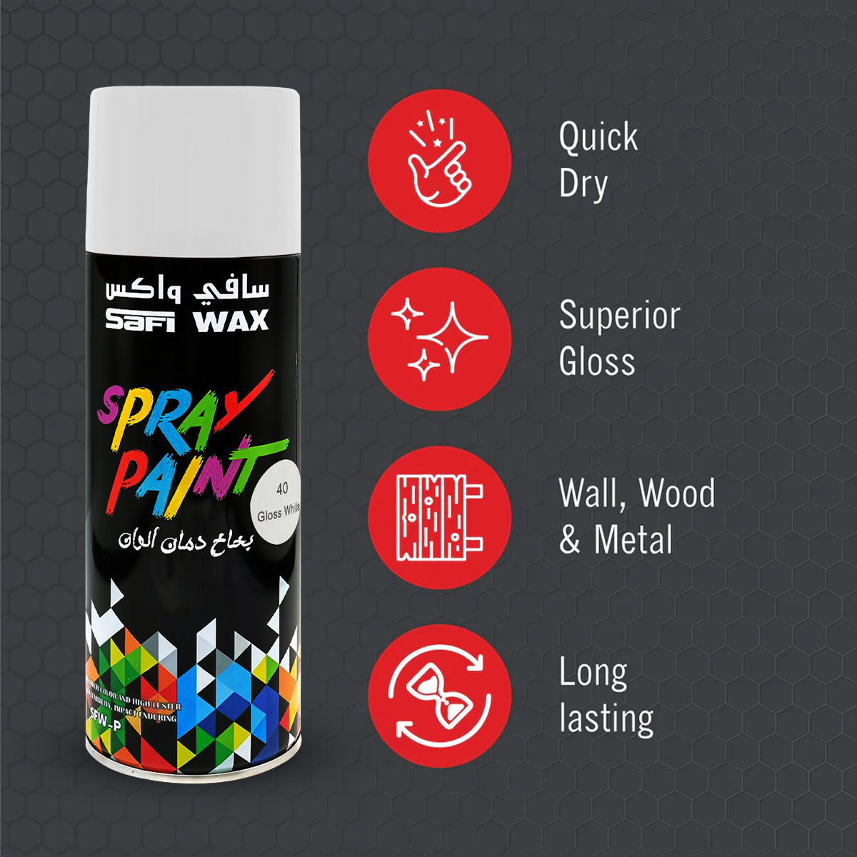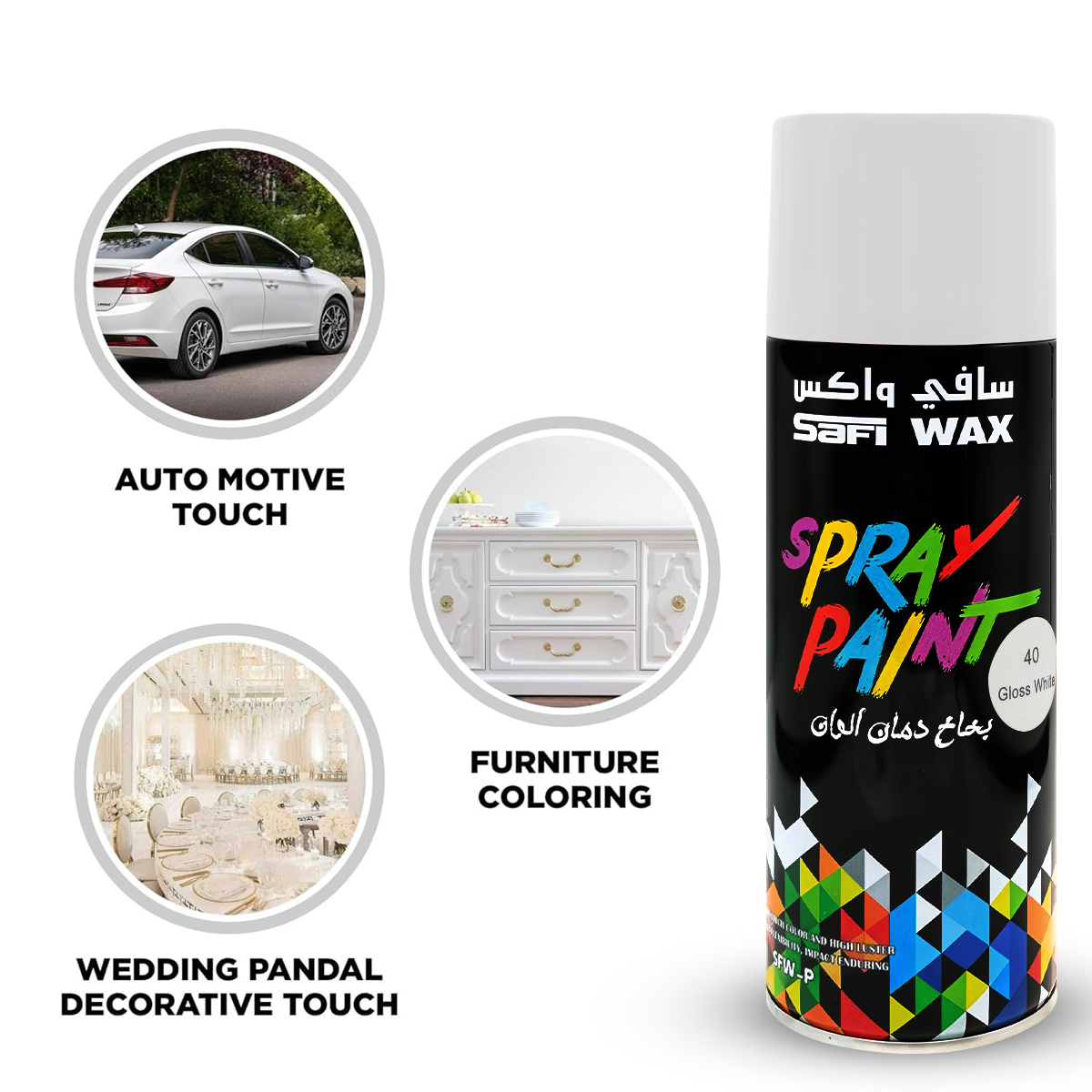 SAFI WAX Spray Paint SFW-P-40 (Gloss White) 450ML – High Coverage, Fast Dry, Smooth Finish Multi-Surface Aerosol Paint