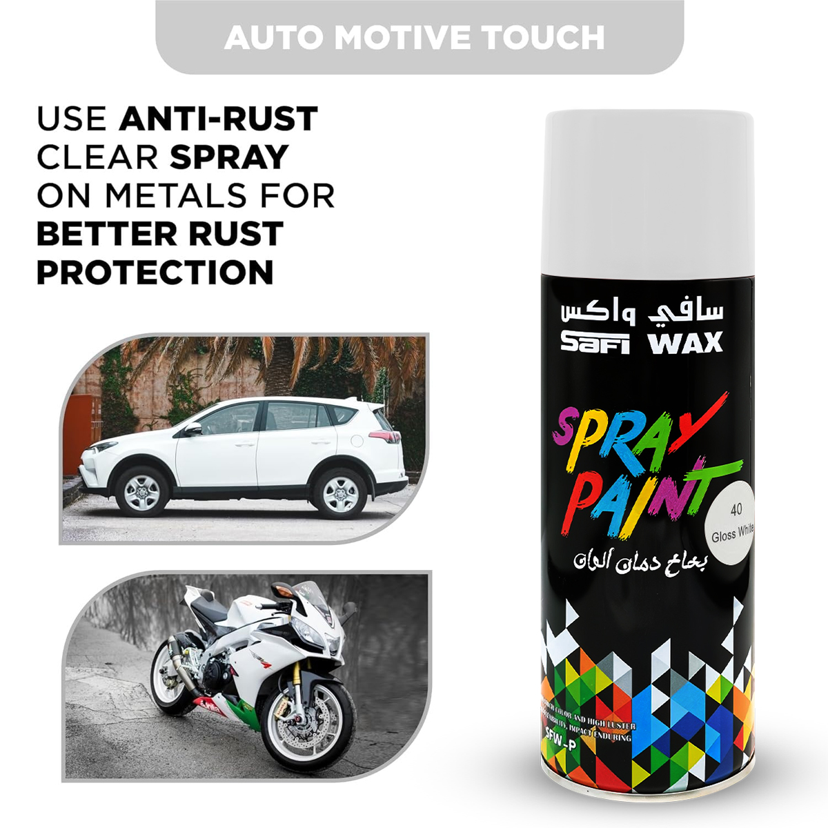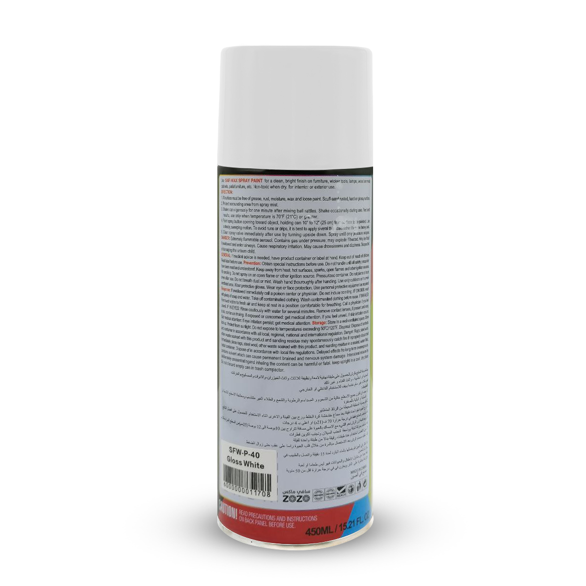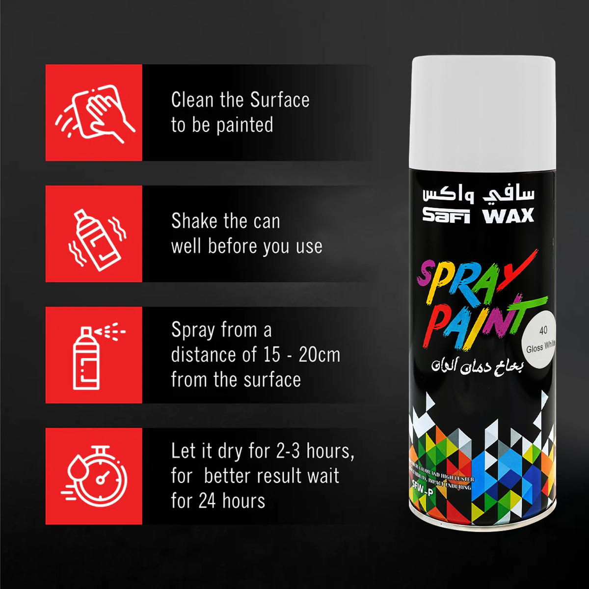 SAFI WAX Spray Paint SFW-P-40 (Gloss White) 450ML – High Coverage, Fast Dry, Smooth Finish Multi-Surface Aerosol Paint